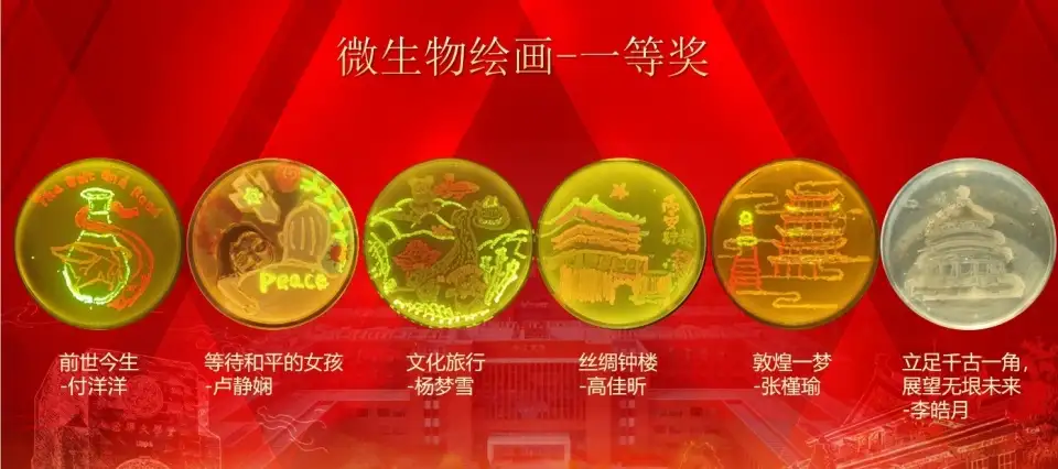 王智文介绍,此次“微生物学实验”的期末考试,还以“微生物艺术创作大赛”的形式,邀请河北工业大学、南开大学、天津科技大学等高校的同学一起参加,以“和平发展,世界共荣”为主题,设置了微生物绘画、显微摄影和短视频三个赛道,让学生们开展创作比拼。