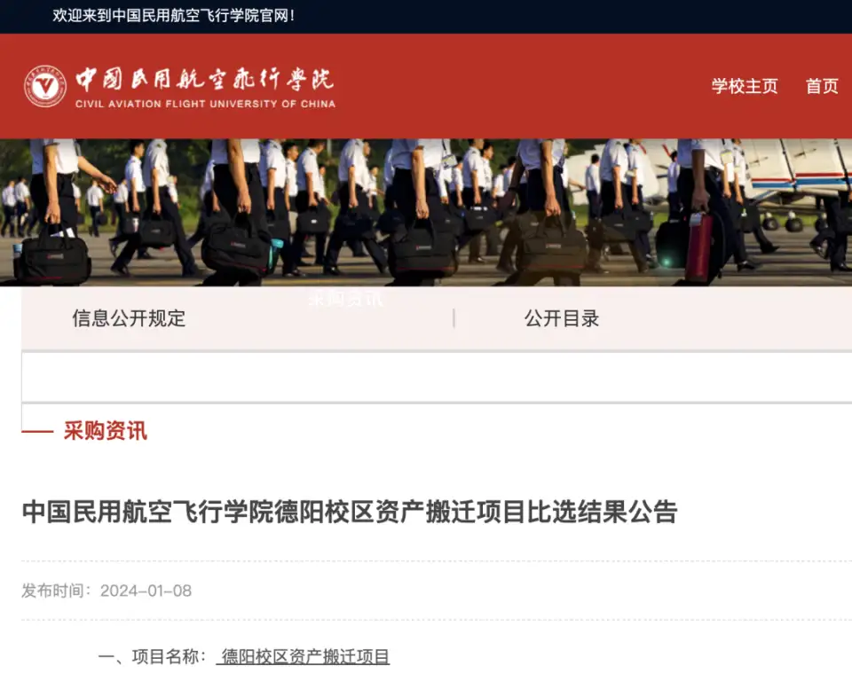 近日,中国民用航空飞行学院官网发布德阳校区资产搬迁项目比选结果公告。