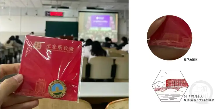 该网友称,长江大学纪念版校徽也涉嫌盗用素材。 受访方供图