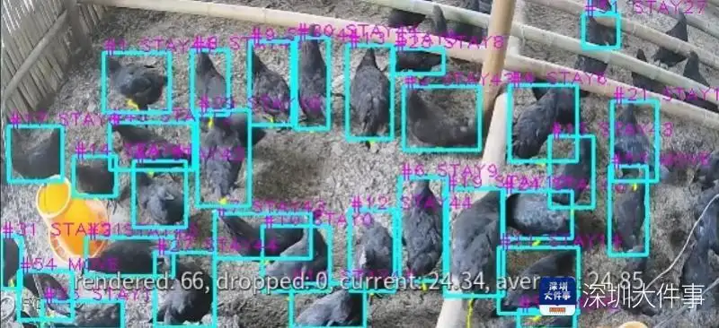 准确定位和追踪乌骨鸡群,成为数字化管理的前提。王翊沣介绍,基于AI养鹅经验,项目组利用目标检测、追踪和行为识别等深度学习和计算机视觉技术,及时发现“呆鸡”和“木鸡”,降低了疫病传播的风险;同时打造“异物报警”功能,让野狗和黄鼠狼等入侵者无法“偷鸡”;还利用温度、雨量传感器等物联网设备监控鸡舍环境。