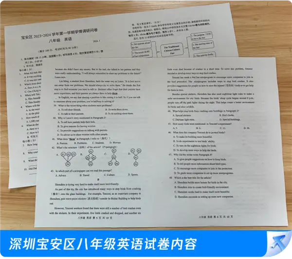 腾讯总部大厦贴膜防鸟撞成试题!登上深圳八年级英语试卷