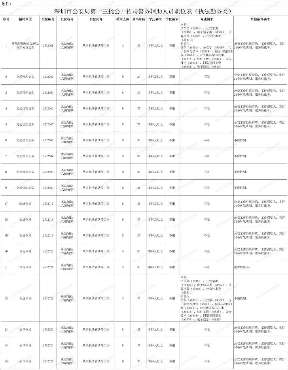 8.依据《深圳经济特区警务辅助人员条例》公开招聘,截至报名首日(2025年12月3日)仍在职的深圳市公安局辅警(包括勤务辅警和文职辅警),不得应聘。
