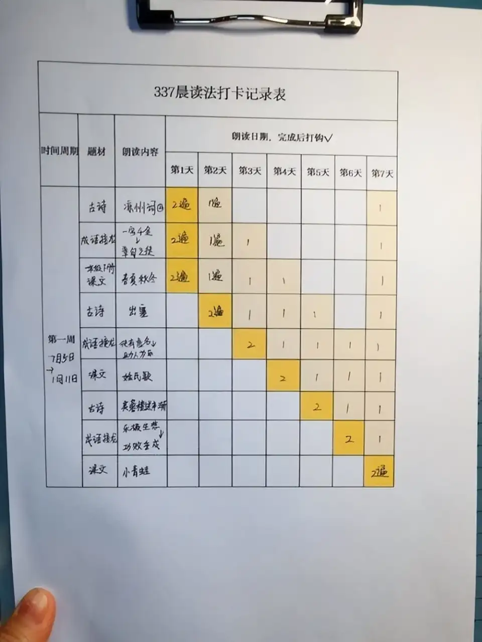 Tips:晨读时,可以大声读出来。如果孩子比较内向,也可以独自在自己的房间大声朗读。