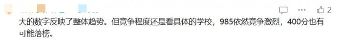 这一趋势往往对于排名较后的学校影响更显著,竞争压力在一定程度上确实有所缓解。有网友提出,如果目标不是985、211和其他“双一流”学校,考研的难度系数并不高,“过了国家线就有学上。”