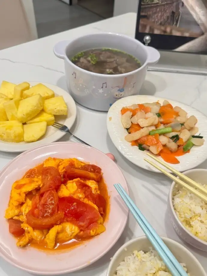 晚上在家吃饭,他不会像之前一样,问怎么没有肉,而是告诉我,晚上少吃点,消化慢,尤其是肉,晚上尽量别做了。