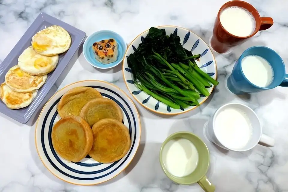 乐乐妈妈每天都会按照《家有小学生的营养早餐》给乐乐准备早餐:鸡蛋、牛奶、青菜、肉饼,有时候加一把坚果。