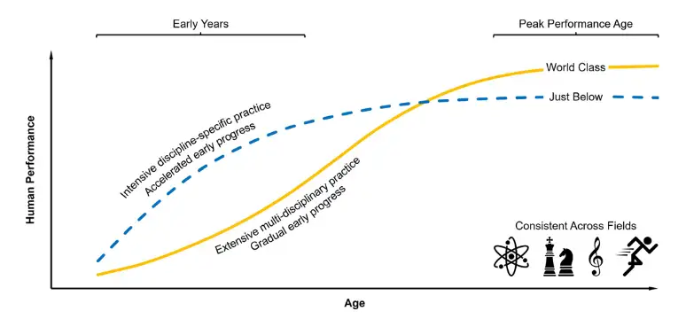 长久以来,无论是学校、运动队还是艺术院校,选拔和培养“天才”的逻辑似乎很简单:找到那些在早期(青少年时期)就表现出过人天赋的孩子,然后通过高强度、高专注度的专项训练,加速他们的成长。这套模式建立在过去大量针对青少年和次级精英(如普通大学生、青年运动员)的研究之上,那些研究确实表明:在青少年群体中,早期的优异表现和大量的专项练习,能很好地预测他们后来的成就。