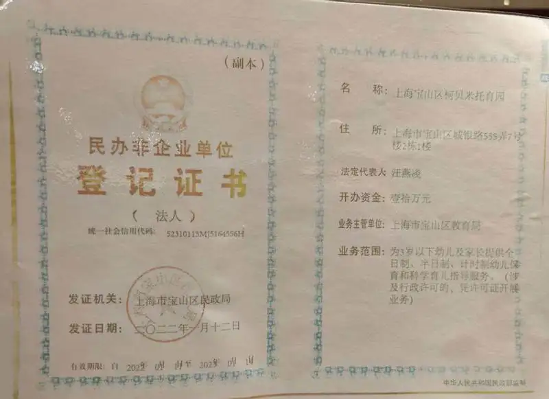 多位家长向“新民帮侬忙”反映,宝山区城银路绿地领海小区内的一家名为“柯贝米”的托育园突然关停,不少家长刚刚缴纳了半年至一年不等的托育费,孩子入园也只有短短几天。为此,家长们是“极度崩溃”,“现在是几万元的钱要不回来,娃也没地方托,阿拉还要请假在家带娃,实在是太作孽了。”