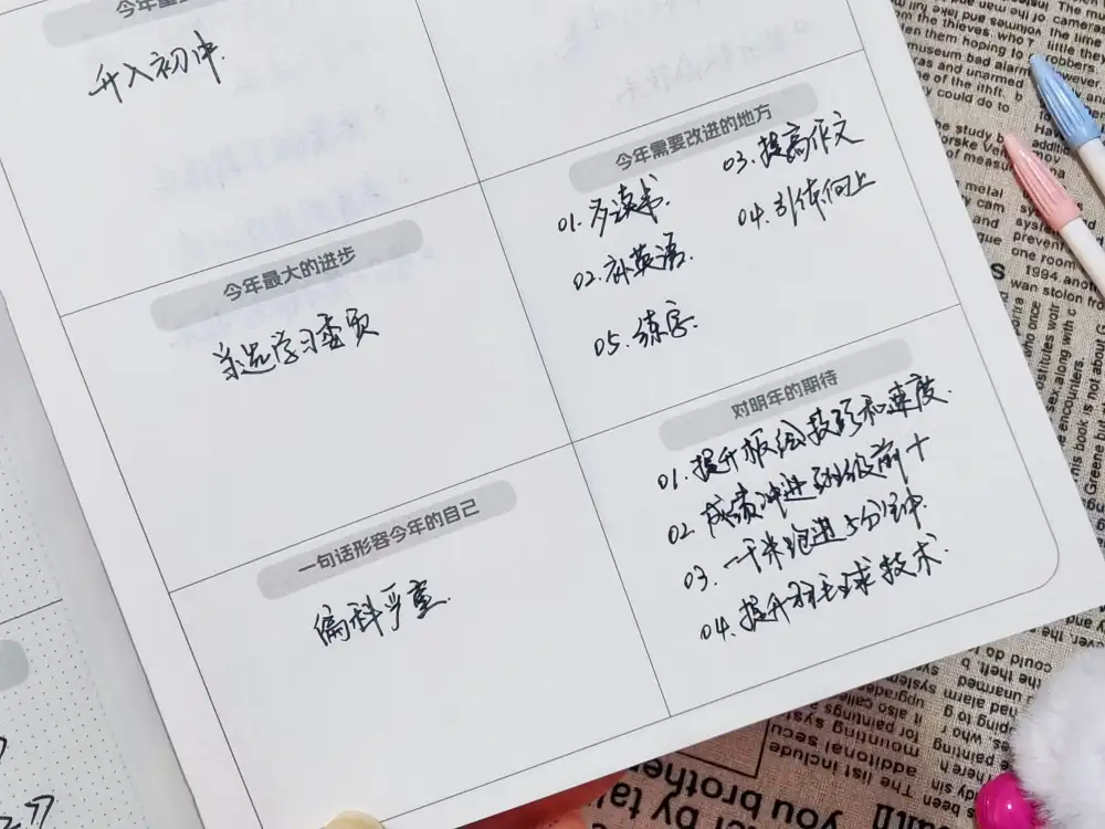 接下来就是个人总结部分了,带孩子一步步回顾这一年印象最深刻的事情、自己最大的变化、最大的进步,会让他有一种收获感。
