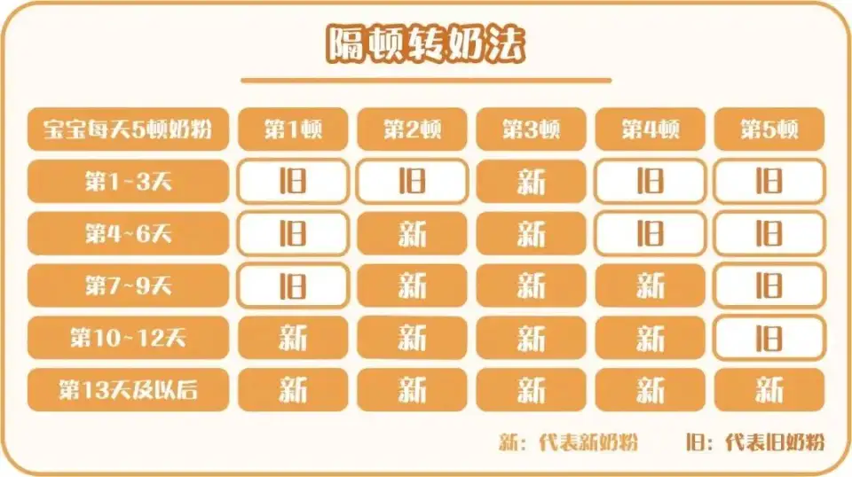 一般不会存在宝宝现喝的奶粉一滴不剩的情况,否则对肠胃可是很大的考验。因为换了新奶粉不能按照旧量那样冲泡,要先尝试,观察宝宝对新奶粉的接受程度。所以在换奶的时候,要采用“隔顿换奶法”。