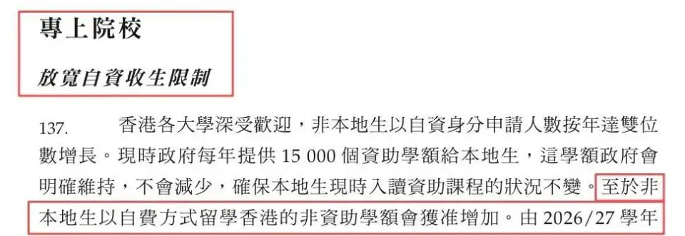 另一方面,香港升学政策层面的持续利好。今年的《施政报告》明确提出,自2026/27学年起,港八大非本地本科生的招生上限将扩容至50%,总名额将从6000人增加至7500人,各校可以在原有基础上进一步扩大非本地生招生规模。