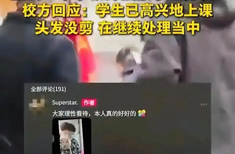 听说最新进展是:学校说,孩子已经高兴地回来上课;涉事孩子说,头发没有剪。