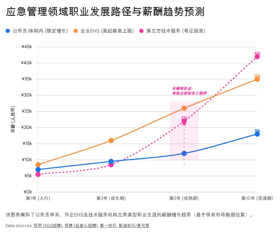 据多方面的信息来看,市场数据极为乐观。在上海等一线城市,一名资深的EHS咨询经理(10年以上经验)月薪可达35k-50k,5-10年经验的经理月薪也在25k-35k之间。即便是应届本科毕业生,工科类(含安全工程)的平均月收入也达到6199元,位居各专业前列。而且,除了传统的化工、矿山,新能源(锂电安全)、高端制造、医药研发等行业对EHS人才的需求正在爆发。