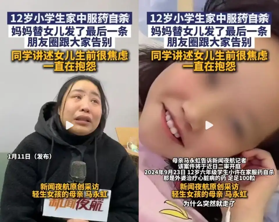 12岁娃因英语单词自杀,起诉学校被驳回?家校谁该担责?大家好,我是周兆成。“日复一日的学习好累,不会写的英语单词,还要被嘲笑胖”,12岁小学生许诺的遗书,字字戳心,最终她在家中吞服药物自杀。母亲起诉学校索赔,一审却被驳回,校长还说“孩子在校活泼快乐”,二审在即,网友吵翻了:学校真的没责任吗?压垮孩子的最后一根稻草,到底该谁来扛?