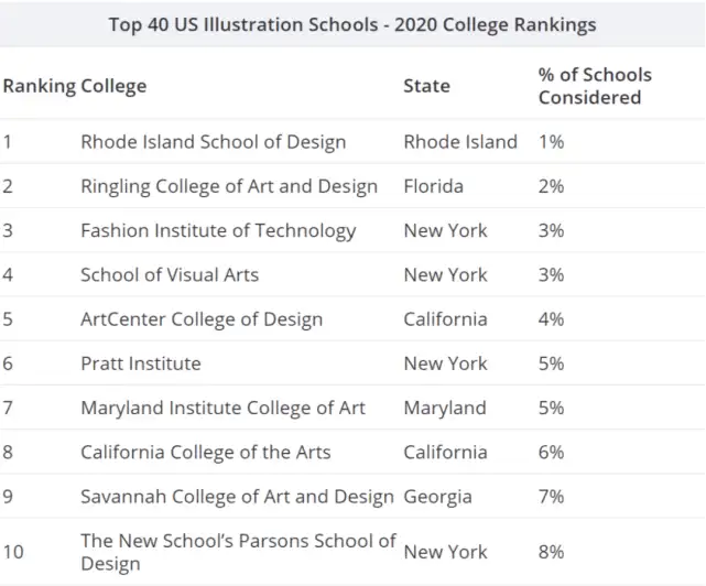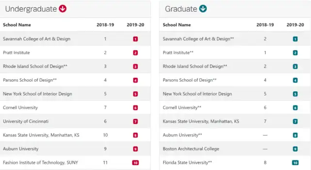 这种时候,我们首先可以参考综合榜单的艺术与设计细分榜单,例如US News、Niche、QS都有艺术类整体排名。更为细分的专业排名,则要参考一些领域内权威机构出具的排名榜单。行业垂直榜单相关机构往往也有对行业整体发展趋势、就业趋势等方面的预测。今天就让帕特君来科普一下这些行业垂直榜单。