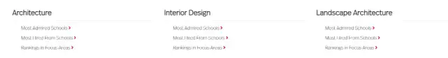 在建筑、室内设计、景观建筑这三个专业中,每个专业都有三个单独的榜单,分别是: