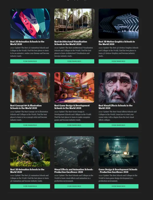 ACR自2012年起公布区域性和全国性的榜单,设立榜单的初衷是由于大量的动画师和游戏设计师发邮件询问相关问题。榜单囊括了ACR官方已知的全部高等院校,但是两年制的社区大学不包括在内。榜单设立的最终目的是为学生及家长提供充足的院校专业信息,帮助他们合理准确地做出选择。