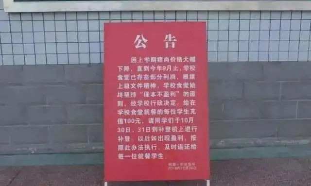 学校本着“保本不盈利”的原则,给每位在食堂就餐的学生充值100元,