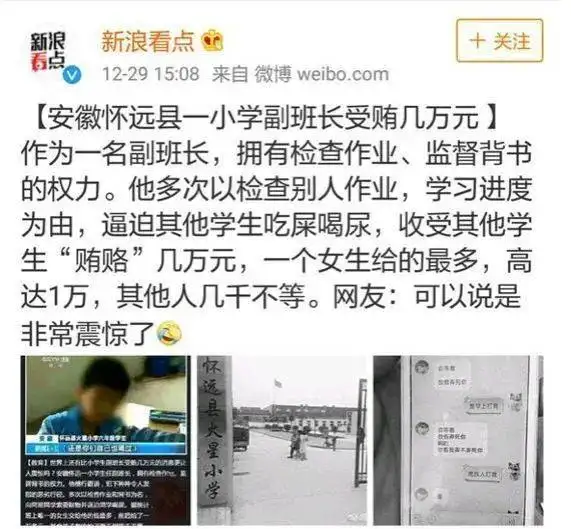 甚至连一个小学的副班长,都可以因为受贿获利高达几万元,