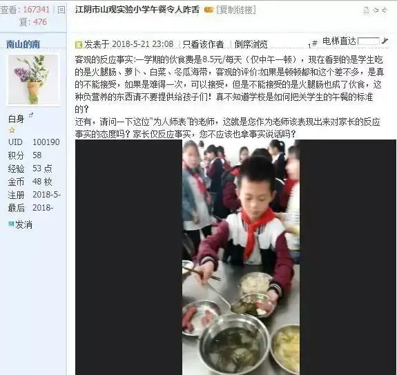 陆续出现了反映“山观实验小学伙食差”的网帖,
