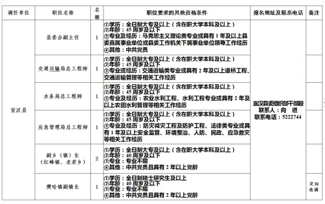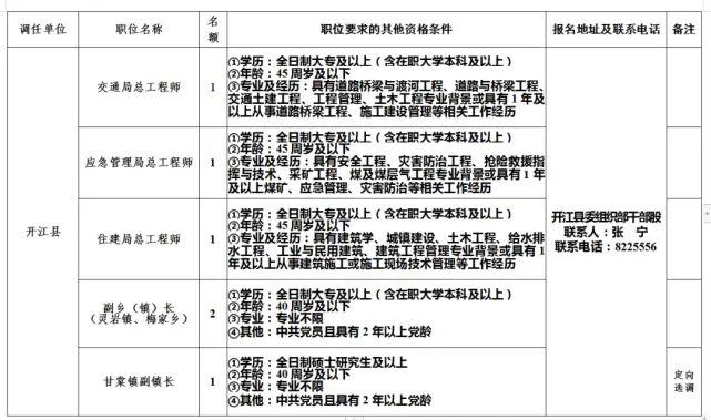 报名人员除应当具备《中华人民共和国公务员法》《党政领导干部选拔任用工作条例》和《公务员调任规定》要求的资格条件外,还应当具备以下条件:
