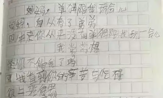 沈阳的一个小男孩写过一首小诗《妈妈,单独陪我玩会儿》,稚嫩的语言间充满了委屈。