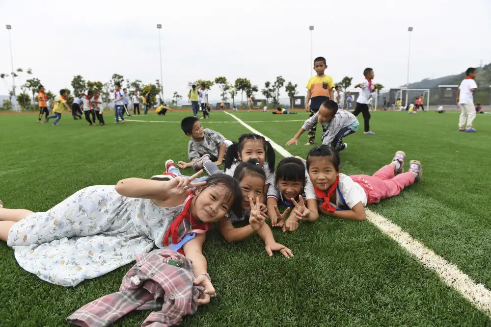 2019年10月16日,广西隆安县粤桂小学的学生在操场上玩耍。新华社记者曹祎铭摄