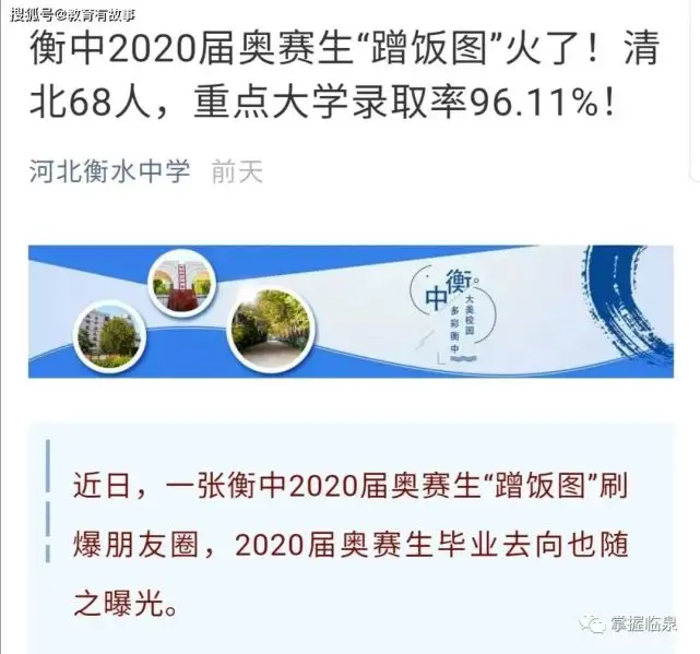 而在这之前,衡水中学仅仅对外公布了2个数据,一个是衡水中学2020届奥赛生中,有68人被清华大学和北京大学录取。另一个是73名学子被清华北大提前录取。但这之后,就再也没看过有关清华大学和北京大学录取的消息。