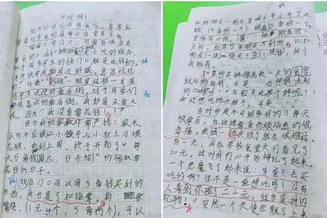 在这篇名为《可怜啊》的作文中,该小朋友吐槽自己每天只有5角钱的零花钱。