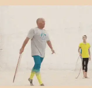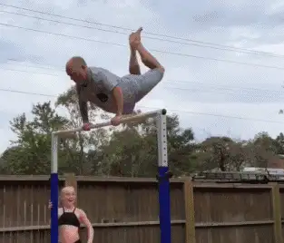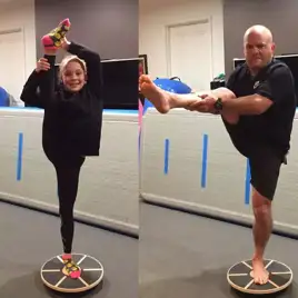 澳洲有一位爸爸陪女儿练体操,动作总是笨拙又滑稽,要么摇摇晃晃,要么摔个四仰八叉。