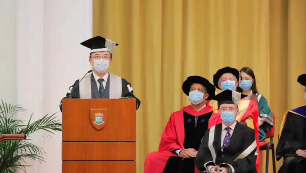 香港大学校长张翔致辞时呼吁同学们互相尊重、对自己的言行负责,以及遵守法律。图源:香港大学官网
