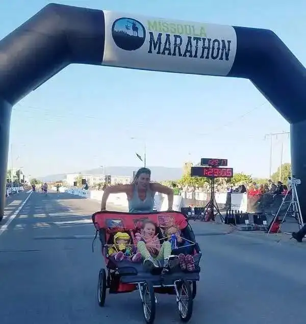 美国有一位母亲,她用手推车推着她的三个孩子跑完了半程马拉松,并以1小时29分钟的成绩打破世界纪录。