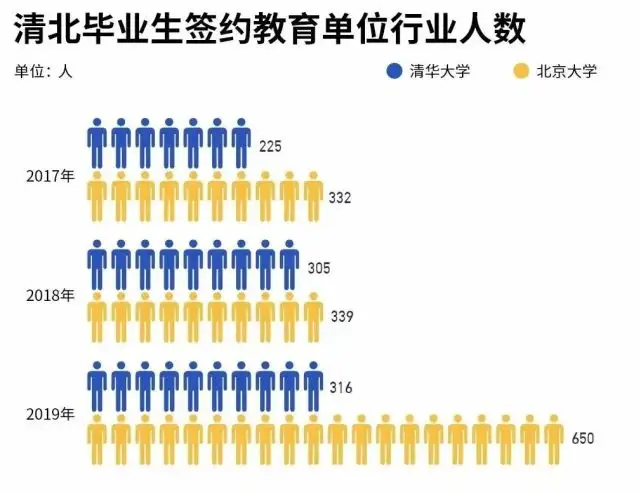 ▲ 清北毕业生签约教育单位的人数逐年递增。图 / 黑板洞察研究院