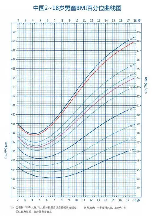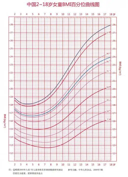 常用判断肥胖的指标有4种,包括体重指数、身高别体重、腰围、腰围身高比 。在临床上最简便的是体重指数(body mass index,BMI)=体重(kg)/身高的平方(㎡),BMI≥同年龄、同性别第95百分位数(P95)为肥胖,≥第85百分位数(P85)为超重。另外一个比较常用的是腰围身高比,女童≥0.46、男童≥0.48是中心性肥胖的筛查指标。