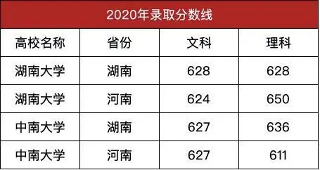 当地生源录取分数线,湖南大学2020年录取分数线都超过中南大学。
