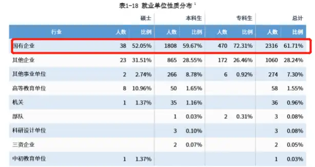 并且毕业生的就业前景非常好,毕业生能够进入到国有企业的人数占比高达61.71%。
