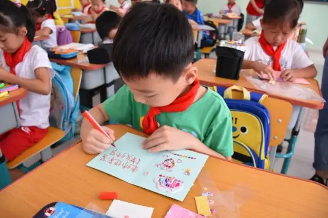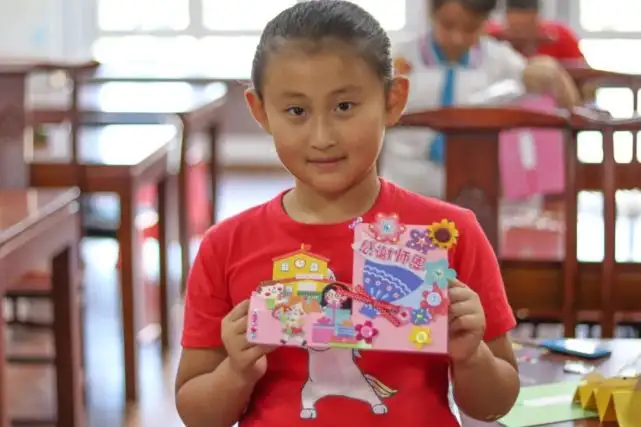 活动中,孩子们选纸、折叠、裁剪、粘贴、绘画......尽管流程相对复杂,但大家都沉浸在手工的世界里,用稚嫩的小手制作着一张张充满爱意的贺卡。同时,孩子们将想对老师说得心里话写在贺卡上,表达对老师的敬爱之情。贺卡制作完成后孩子们都非常高兴,纷纷表示要把自己最满意的作品送给心爱的老师。